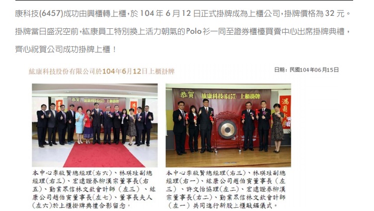 紘康科技上櫃業績發表會新聞稿