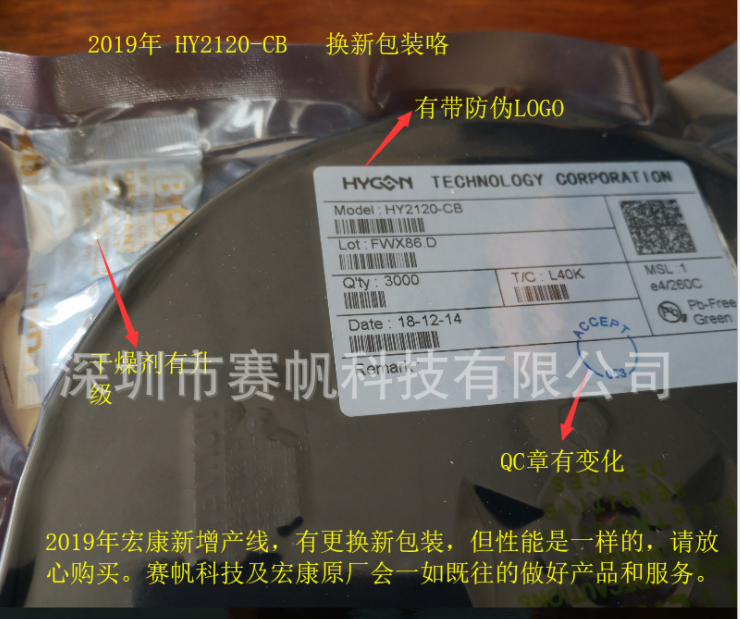 2019年宏康增加新的产线,所以最近的出货,会有两种包装,新老包装随机出货,但是货的品质是一样的,客户们不用担心。原厂和赛帆科技也会一如既往的服务好大家 ,谢谢大家的支持。